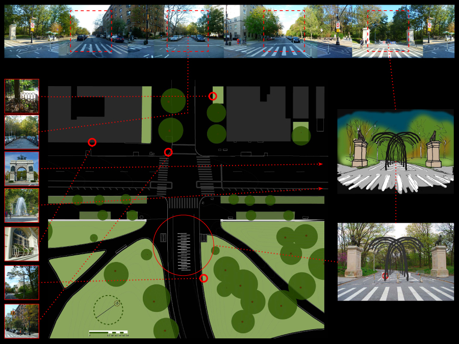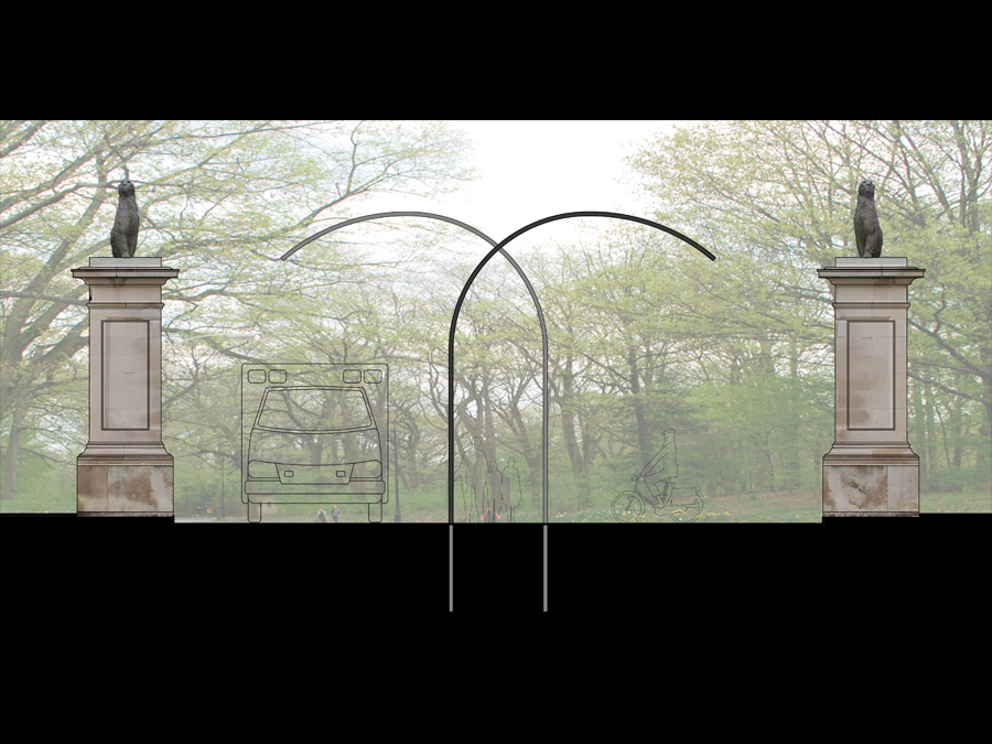 "3rd Street Arches" is a simple and bold solution to the challenge of ameliorating Prospect Park's 3rd Street entrance. Its simplicity is derived from repetition and an understated monumentality, which is neither overwhelming nor unnoticeable. In passing, the dynamic entrance blends into its surroundings. The arched forms echo numerous fixtures around the neighborhood familiar to local Park Slopers.