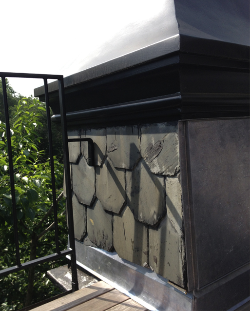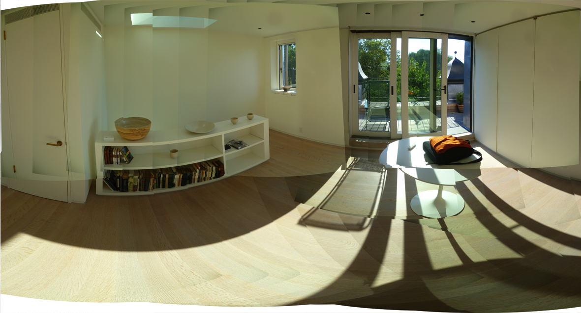 A penthouse addition atop a historic townhouse on the Upper East Side, for a photographer client. Hardly 500 SF in size, the addition tucks all hardware, lighting, plumbing, and mechanical systems away and utilizes a variety of off-white finishes to create a soft, bright space which changes its tonality with the daylight. Exterior scope was very sensitive to the Landmarks Preservation Commission and included new lead-coated copper siding and flashing, ipe decking, metal railings, restoration of windows and turrets, and masonry repointing.