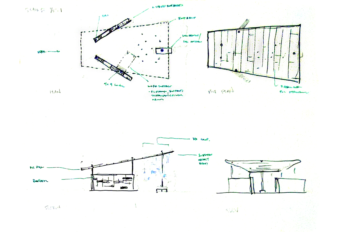 Competition entry for SUPERFRONT's 2012 Public Summer Competition. The competition's program, "a Library of Immediacy," calls for a temporary pop-up library to be built on Governor's Island Parade Ground . The architecture is to be cheaply-built, quick to erect and disassemble, and must promote the congregation of people around books.
