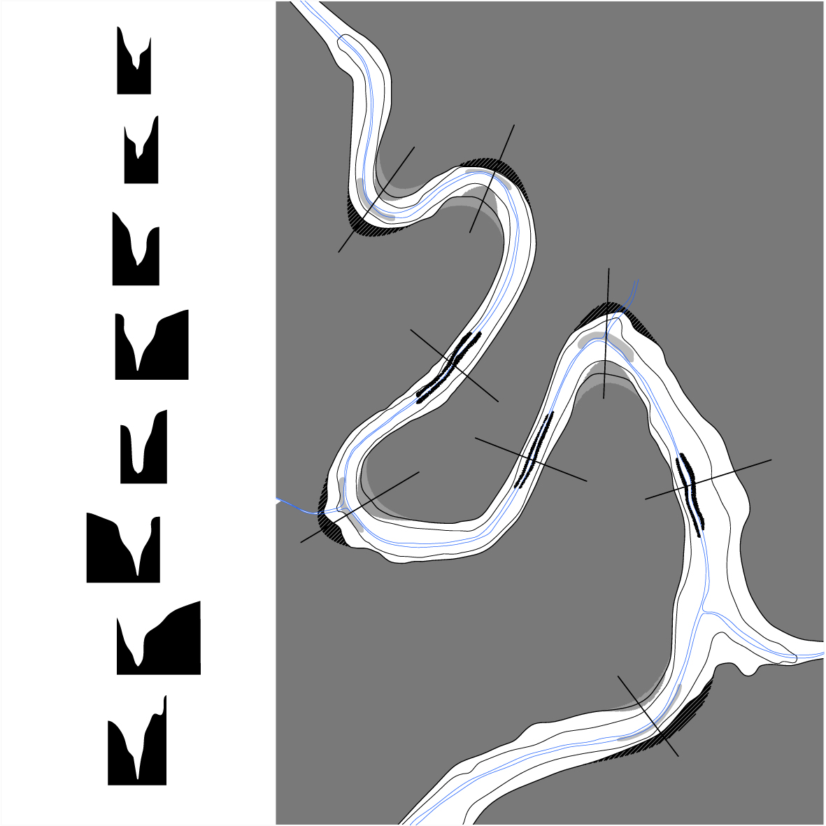 Analysis was undertaken through the lens of entropy, as particles are fragmented and scattered from rock to silt to water. A transformation was made upon the sharpest bend to reflect the natural processes already in place.