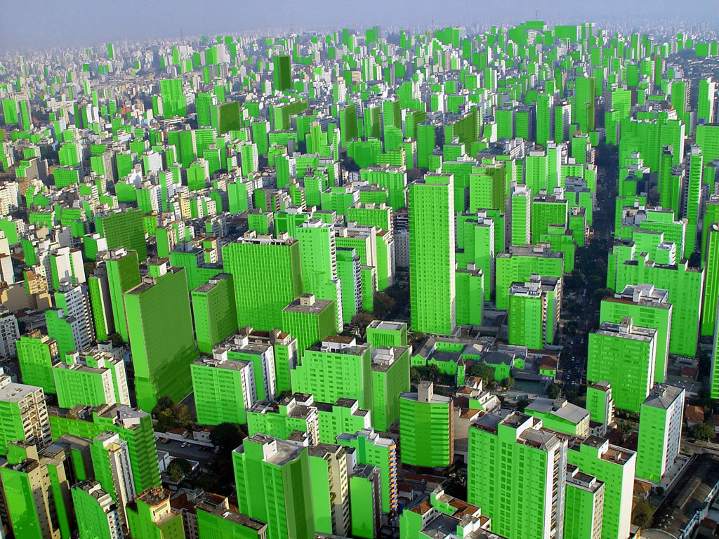 As described in my blog post of the same name, there will soon come a time when an overabundance of vertical surfaces will result in an effective inversion of the seasons, and will necessitate the mitigation of solar heat gain (the bureoning technologies of solar power, integrated vegetation, passive heating, etc.) primarily through a building's facade rather than its roof. The magnitude of such an initiative when applied to heavily-developed urban centers will be considerable.