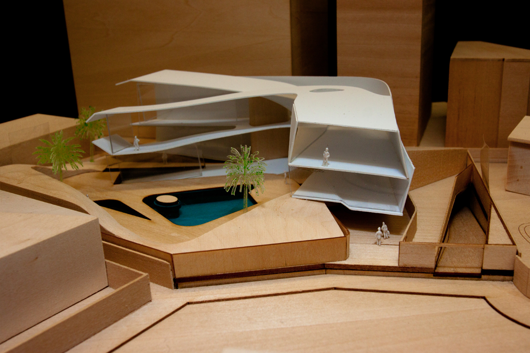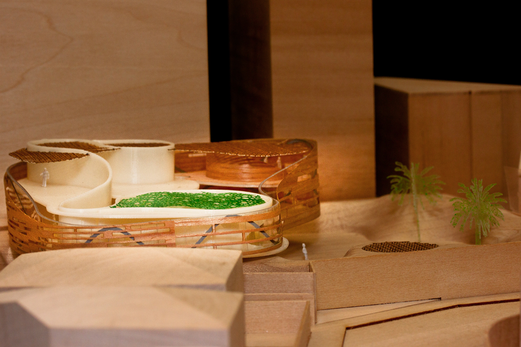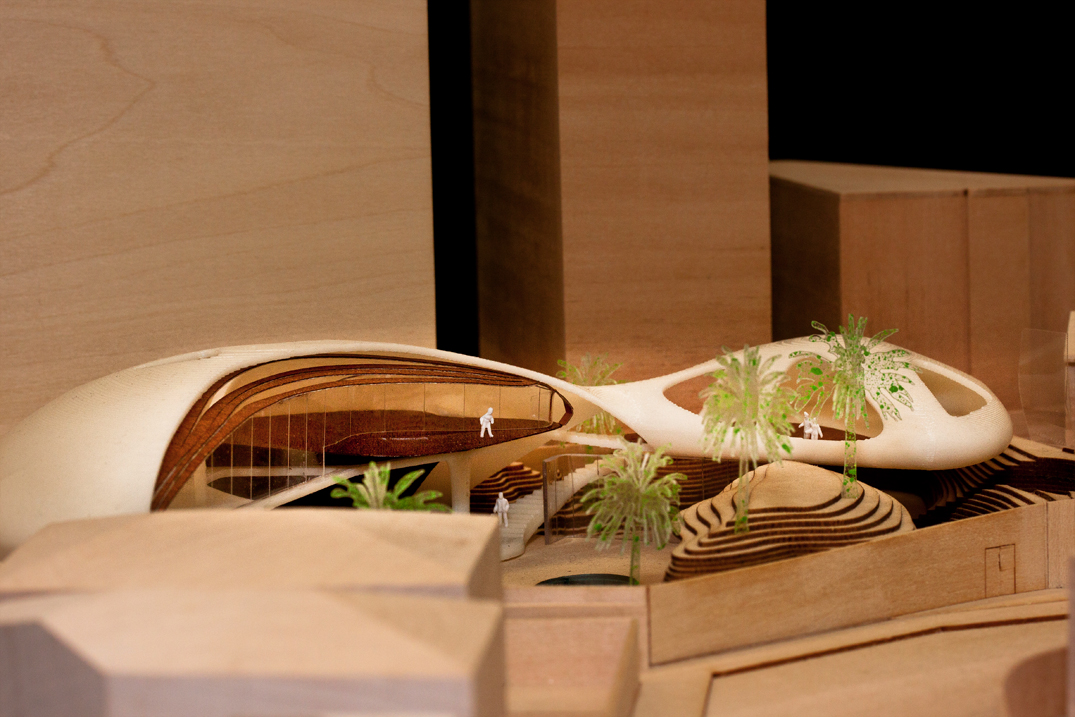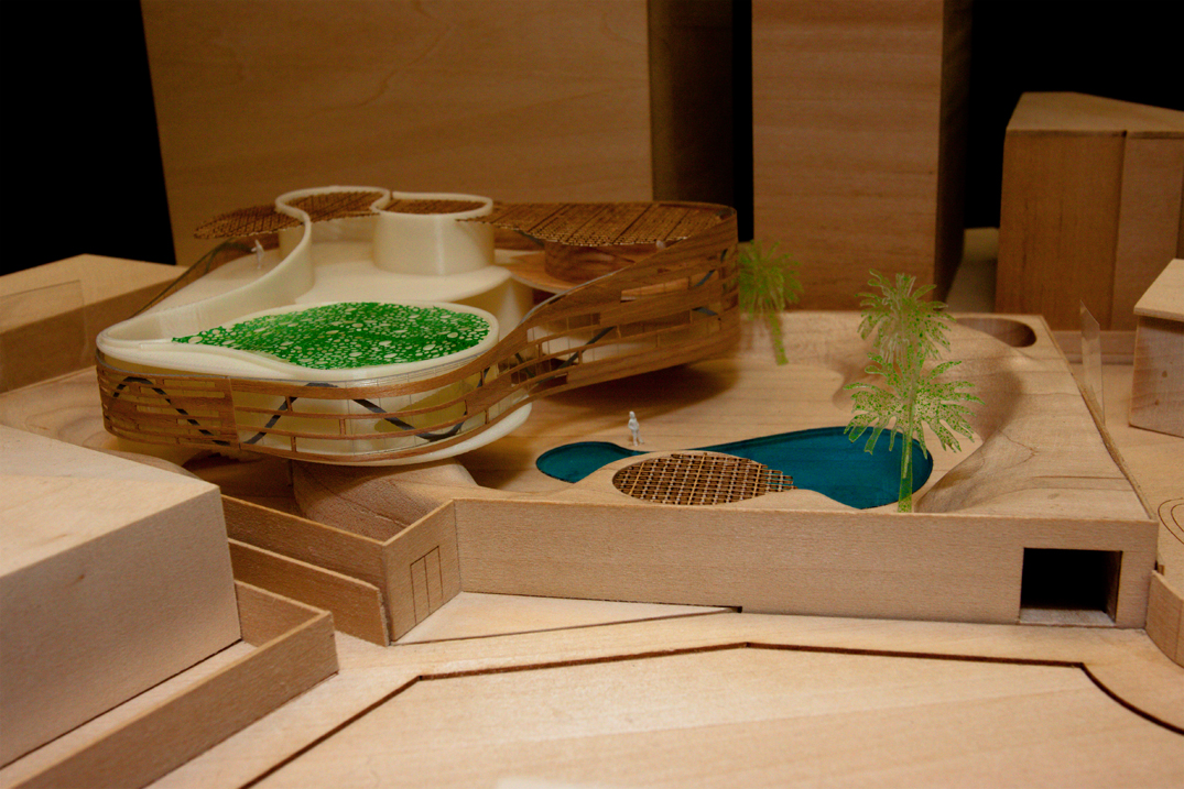 Model constructed of basswood, balsawood, acrylic, 3D-printed ABS, polystyrene, spraypaint.