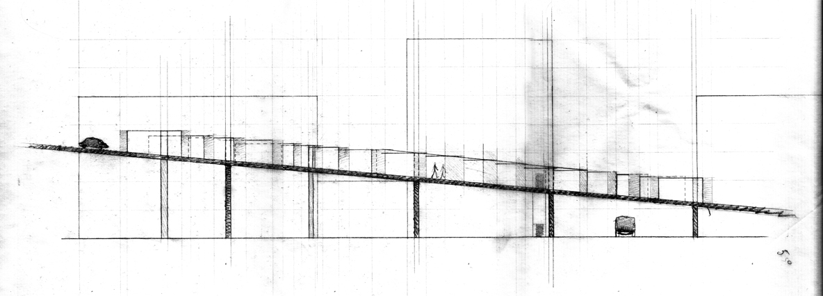 The project involved selecting a site in Manhattan with a "threshold" quality, or one with a "latency for inhabitation". This threshold would serve as a departure point for investigations into the conditions surrounding the design of a temporary inhabitation for a transient urban figure.